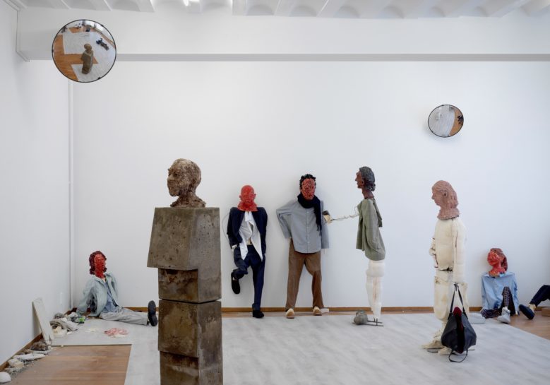 Sander Breure & Witte van Hulzen, the Thief, 2019, installation overview at Marres Maastricht, ceramics, concrete, plaster, textile, wood© Gert Jan van Rooij