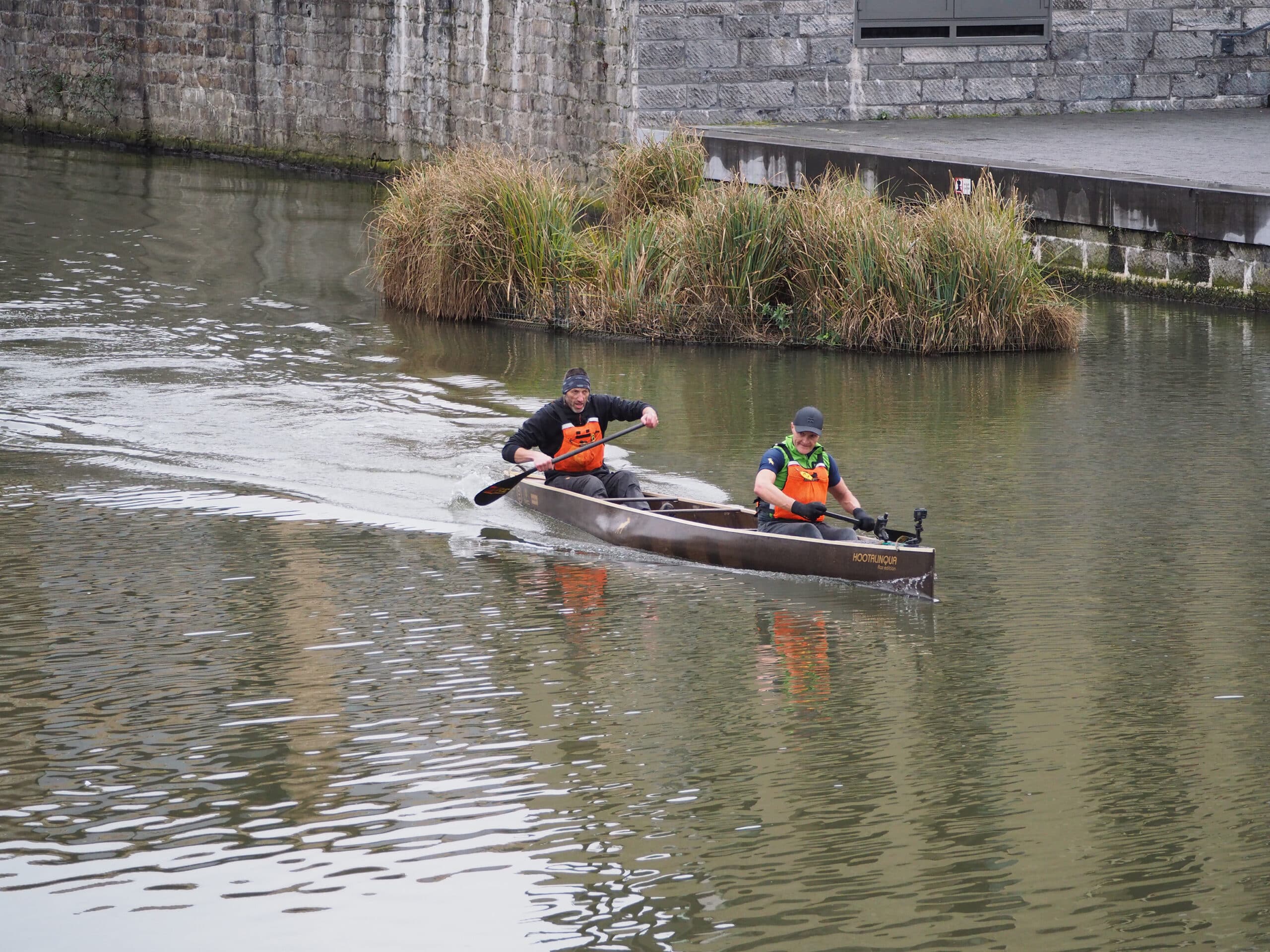 Danny Veys and Francis Soenen paddled down the Leie, from source to mouth, in a canoe made of flax composite.© Jan Vanhulle