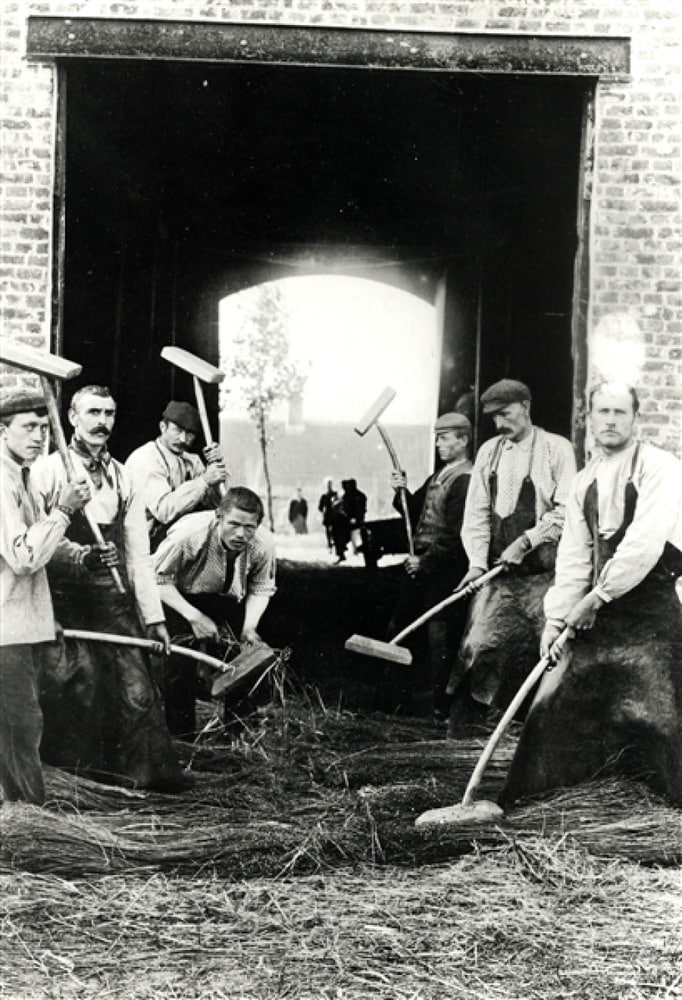 Flax processing required heavy manual labor.© Johan Desmet Foundation, Digital Collection Flax heritage Province of West Flanders
