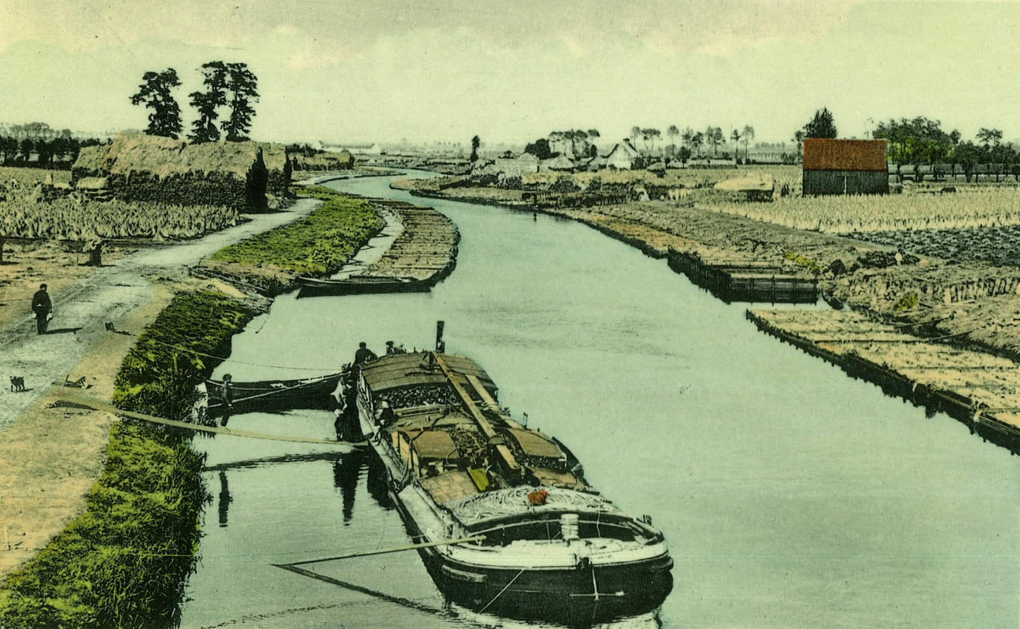 With the emergence of new techniques like hot retting, flax processing could now take place further from the Leie. The bends of the river were straightened to allow increased shipping traffic, old Leie arms were cut off from the current and new industry appeared along new canals. This is the historical explanation for the emergence of ribbon development and the gradual urbanisation of flax villages.