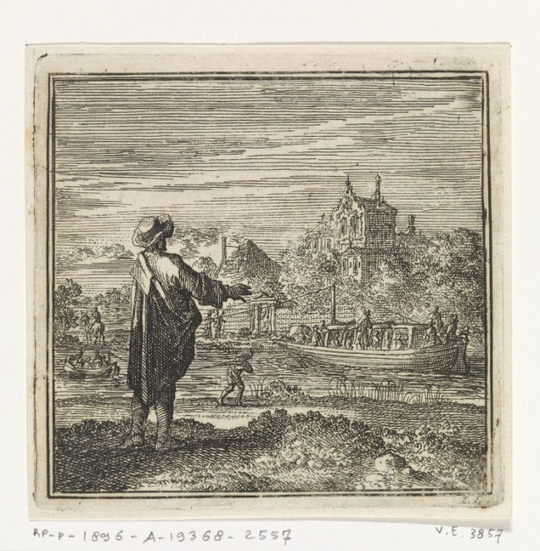 On the waterfront a man watches a barge. Etching by Jan Luyken, 1711© Rijksmuseum, Amsterdam