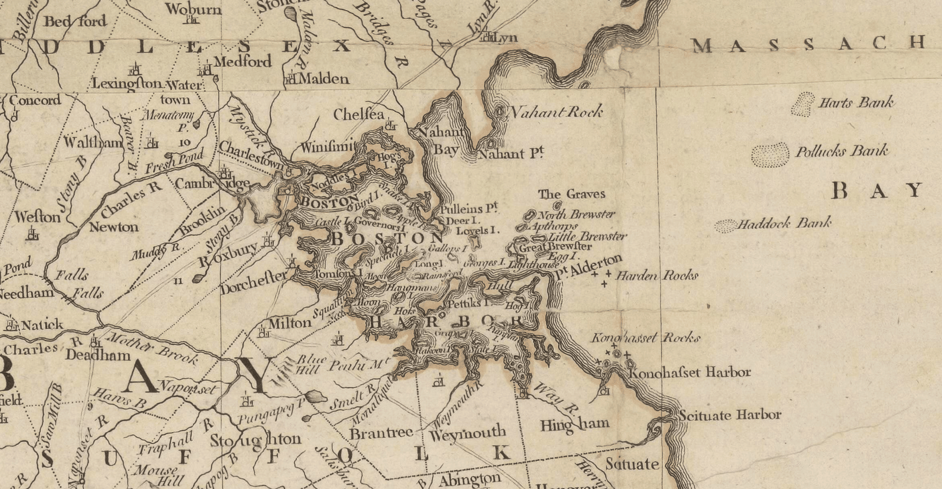 Map of Boston in 1774 (detail of map of New England)© National Archives of the Netherlands