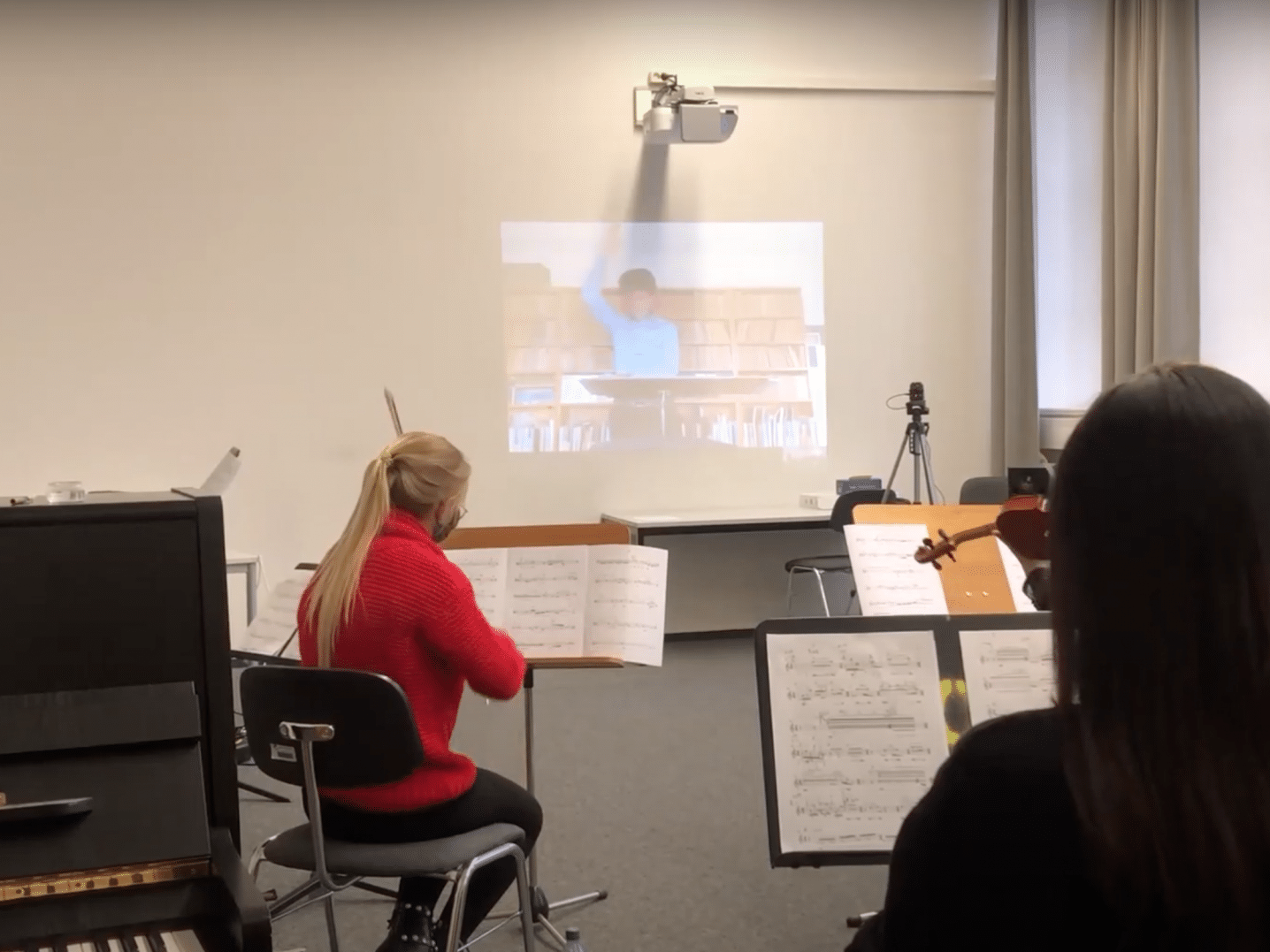 René Gulikers conducts musicians virtually at the Music Academy in Bremen.© René Gulikers