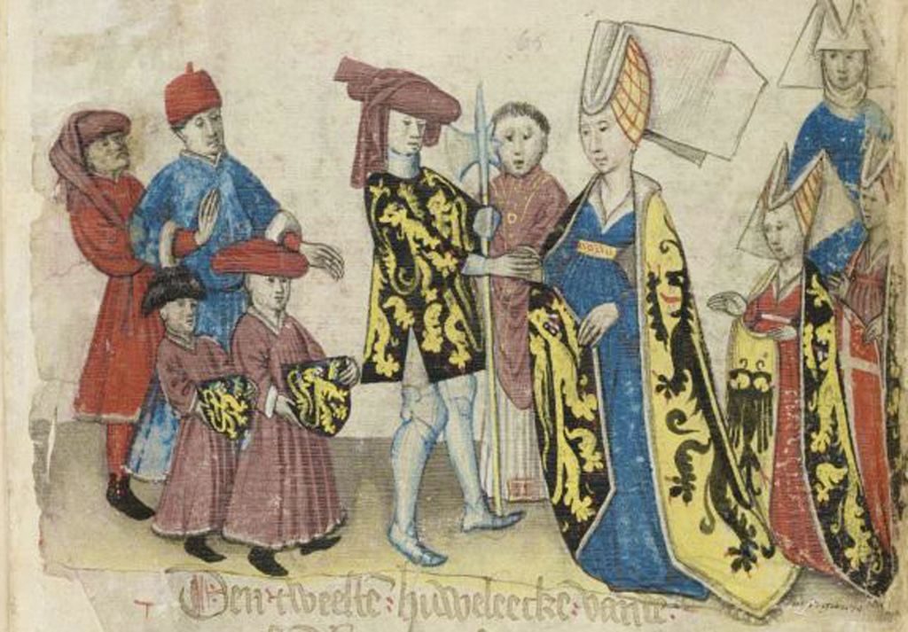 The marriage of Margaret of Flanders to Duke John I of Brabant, depicted in a manuscript of the Brabantsche Yeesten.© Wikipedia