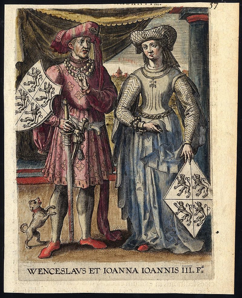 Duchess Joanna of Brabant and Duke Wenceslaus I, key players in the War of Brabant Succession.Source: Adriaan van Baerland, Rerum gestarum a Brabantiae ducibus gestarum historia, 1526 © Wikimedia Commons
