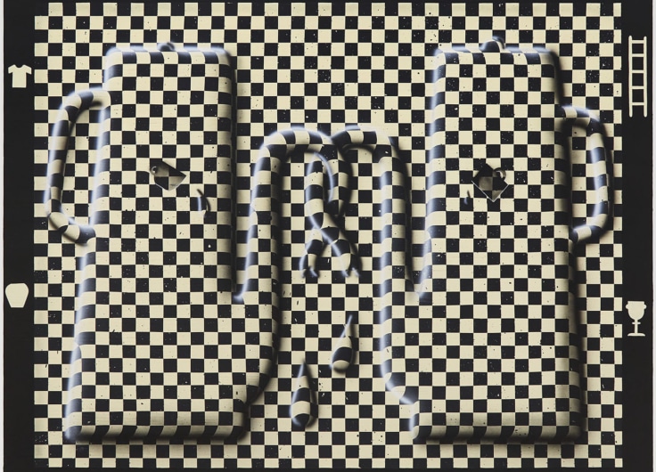 By following this trajectory, the visitor is encouraged to make connections between different works, stepping through their porous frames and wading from one canvas to the next. A quest, in effect, for the falafel kings of our world.