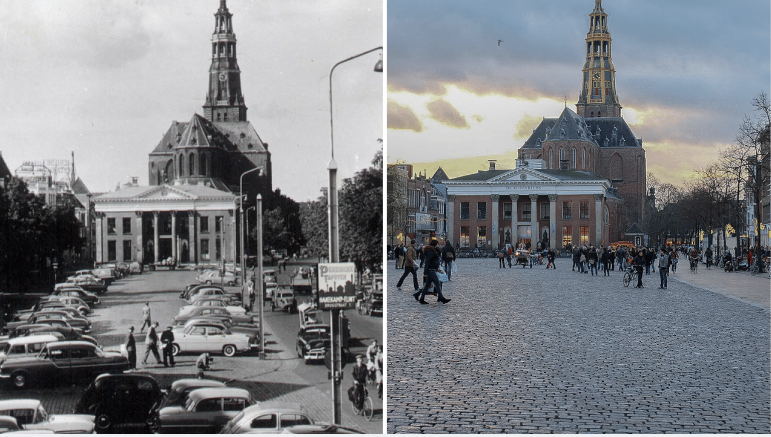 The Vismarkt (Fish Market) in Groningen at the end of the 1950s and todayRacing cyclists and everyday cyclists