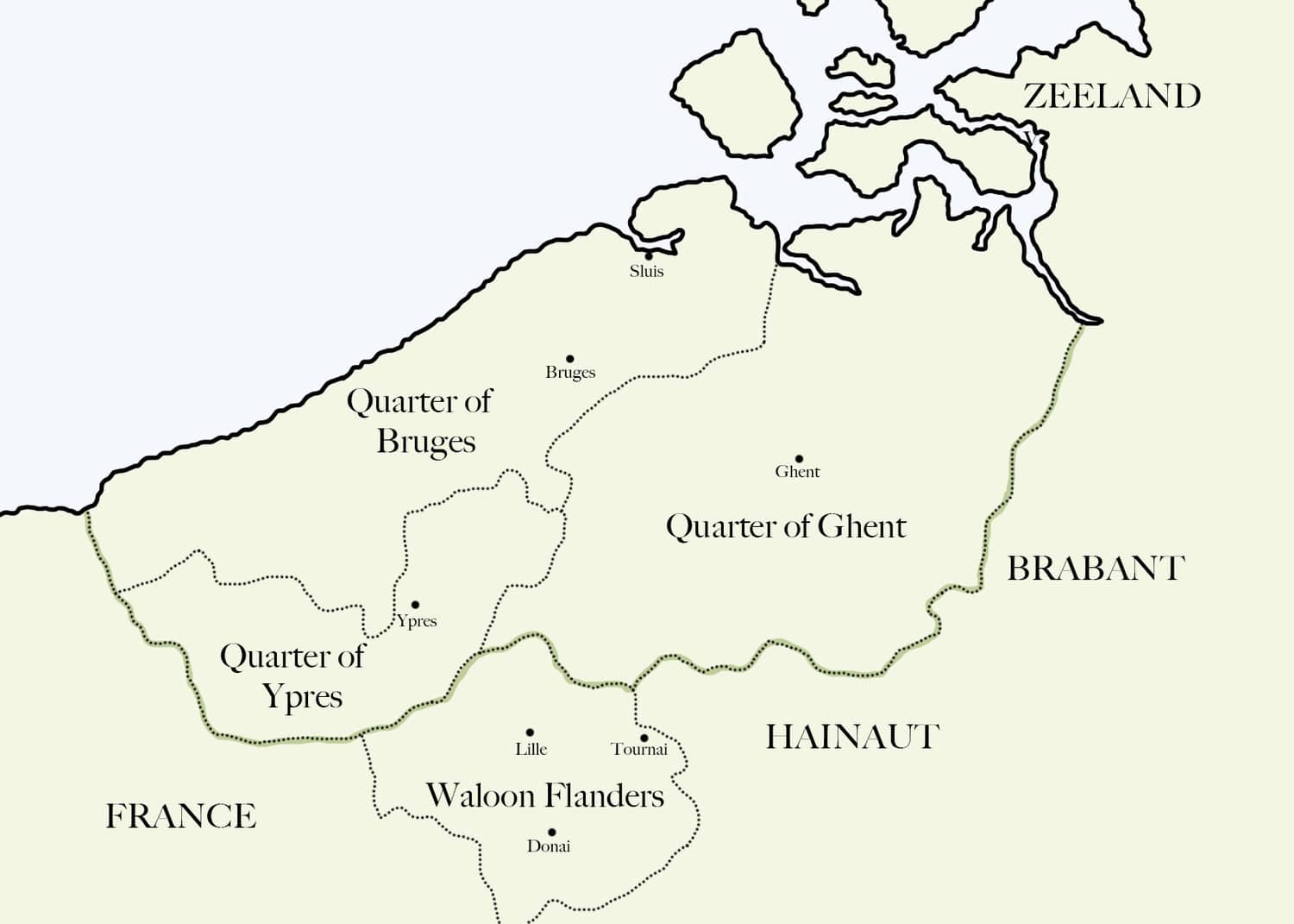 Map of Flanders showing regional divisions in around 1320© David Cenzer