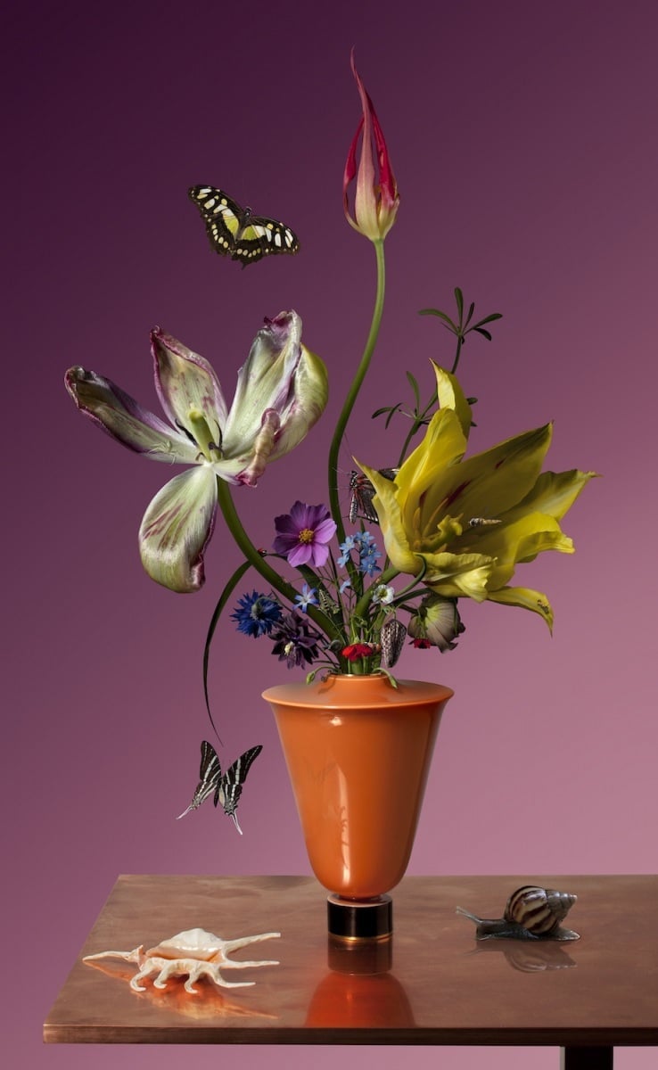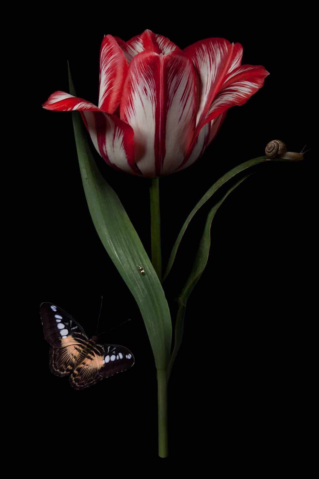 The Dutch photographer Bas Meeuws is continuing the tradition of Golden Age floral still lifes. And those in the canvases of Hans Bollongier (1600-1645) provide the most inspiration. Bollongier painted not just flowers, but tulips, which were very exotic and exclusive in the seventeenth-century Netherlands. Through his carefully composed still lifes, Meeuws demands both respect and admiration for nature.