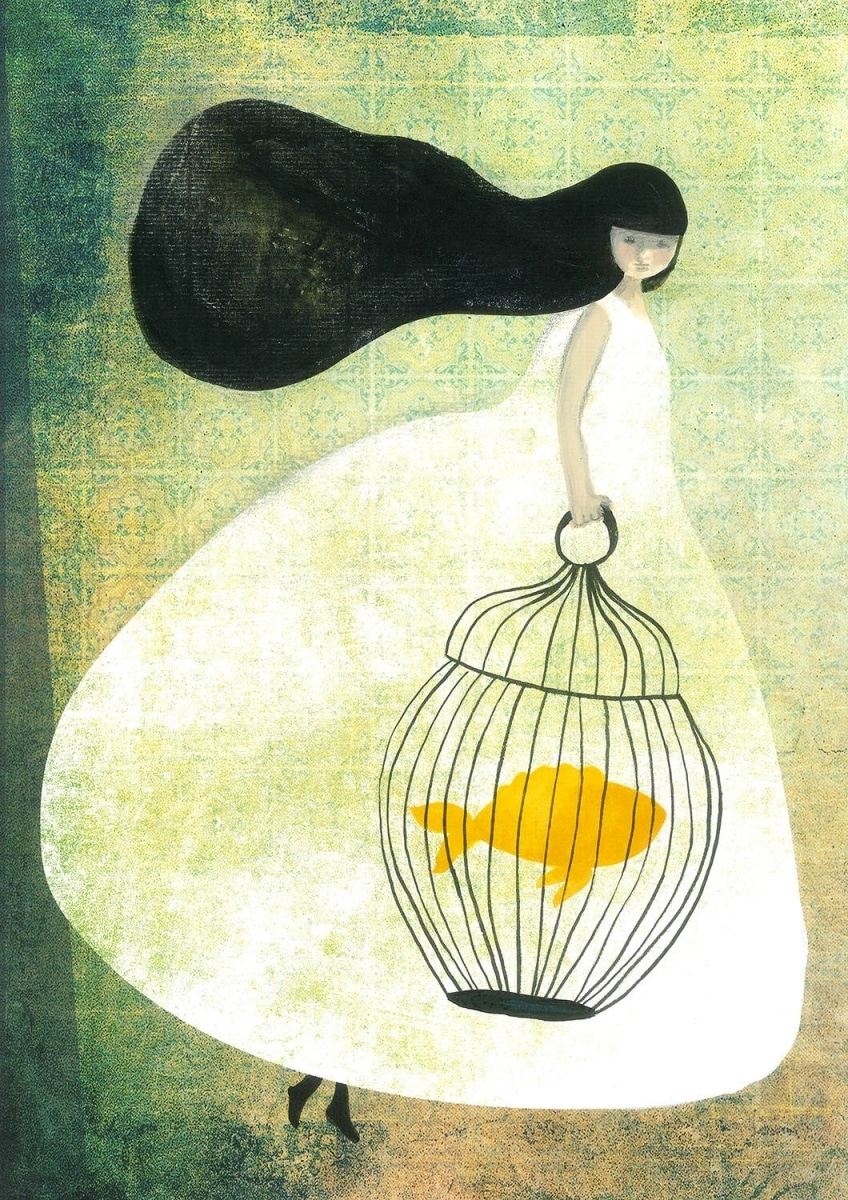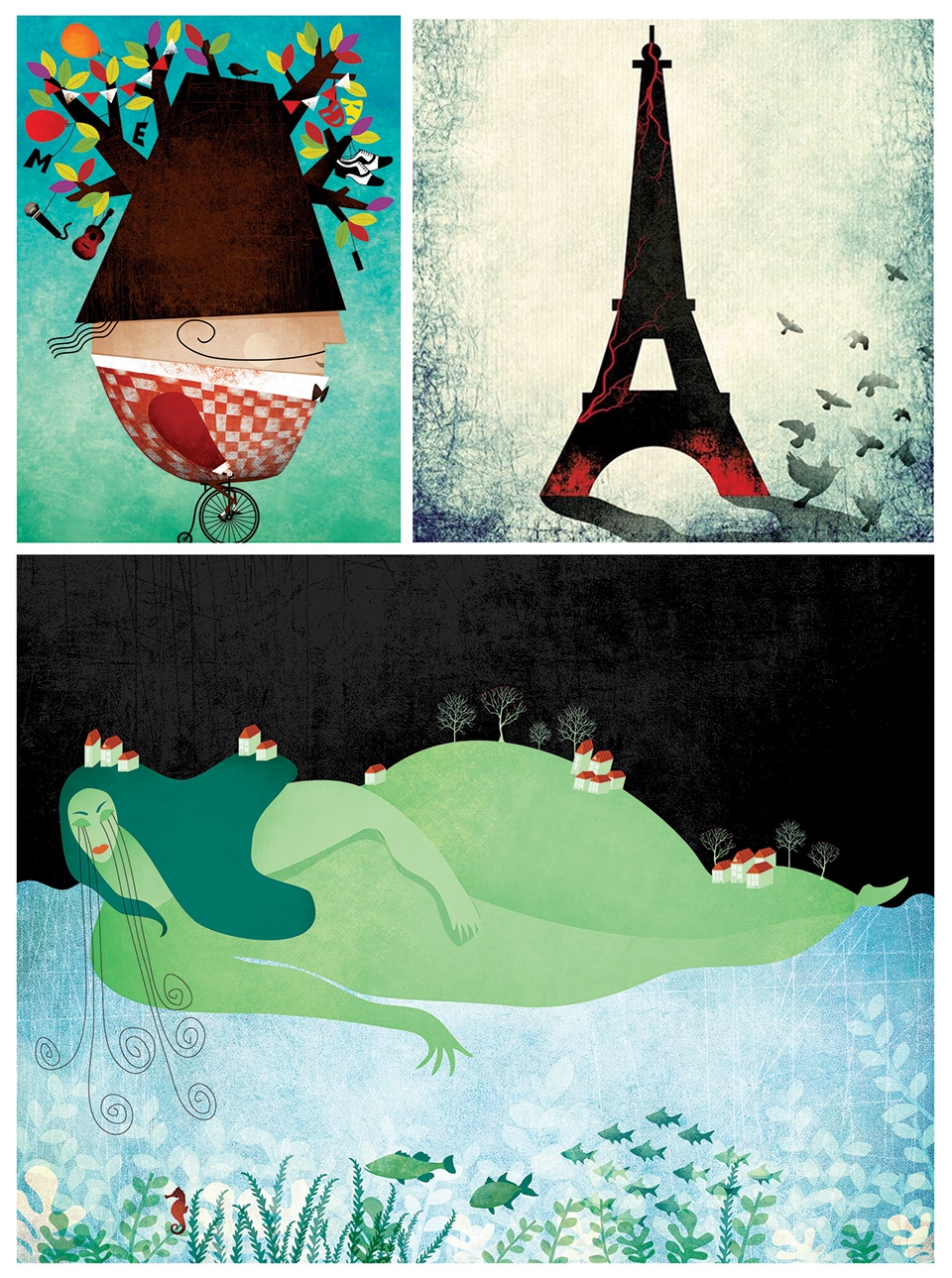 Becoming an illustrator allowed Ramos to finally put part of her personality in her work. She was never on the lookout for a specific technique. To Ramos, illustration equals going on a journey, as well as experimenting. She mixes various techniques, and opts for a mixed media approach, combining drawings, scans, prints, covering everything with additional layers of paint, et cetera.