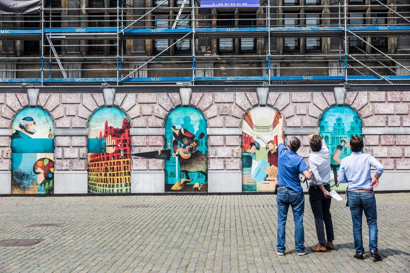 Looking back on her endeavours, what does Ramos consider her proudest moment? “Decorating the Antwerp city hall,” she replies. While the building is being renovated, passers-by can enjoy twenty-eight monumental illustrations made by Ramos, some of them about four metres tall. Those who look closely can actually discover the artist in the midst of her own art work – in the Tower of Babel to be more precise. “I had never before created a work of that size,” Ramos says. “It was an interesting experience, but I had to step out of my comfort zone.” However, she decided to accept the challenge, and dealt with it in a way similar to how she would approach a children’s book: twenty-eight panels equals twenty-eight pages. “The council provided me with information about the city’s history and its identity. I used those ingredients to bake a delicious cake. I tried my very best to succeed.”