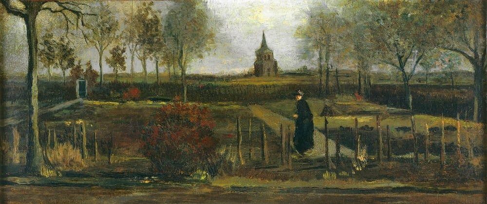 Vincent van Gogh, Spring Garden, the Parsonage Garden in Nuenen in Spring, 1884, oil on panel, 39 x 72 cm, Groninger Museum© Groninger Museum